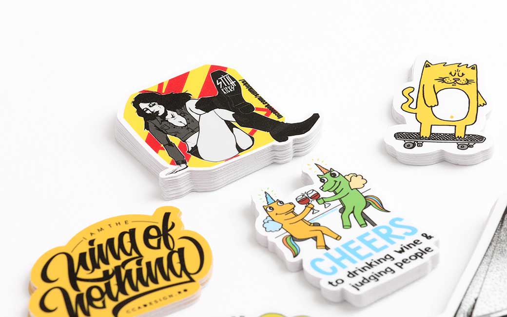 Stickere die cut personalizate taiate cu precizie pe forma designului tau. Realizate din PVC de inalta calitate si laminate pentru protectie impotriva zgarieturilor, a ploii si razelor de soare.